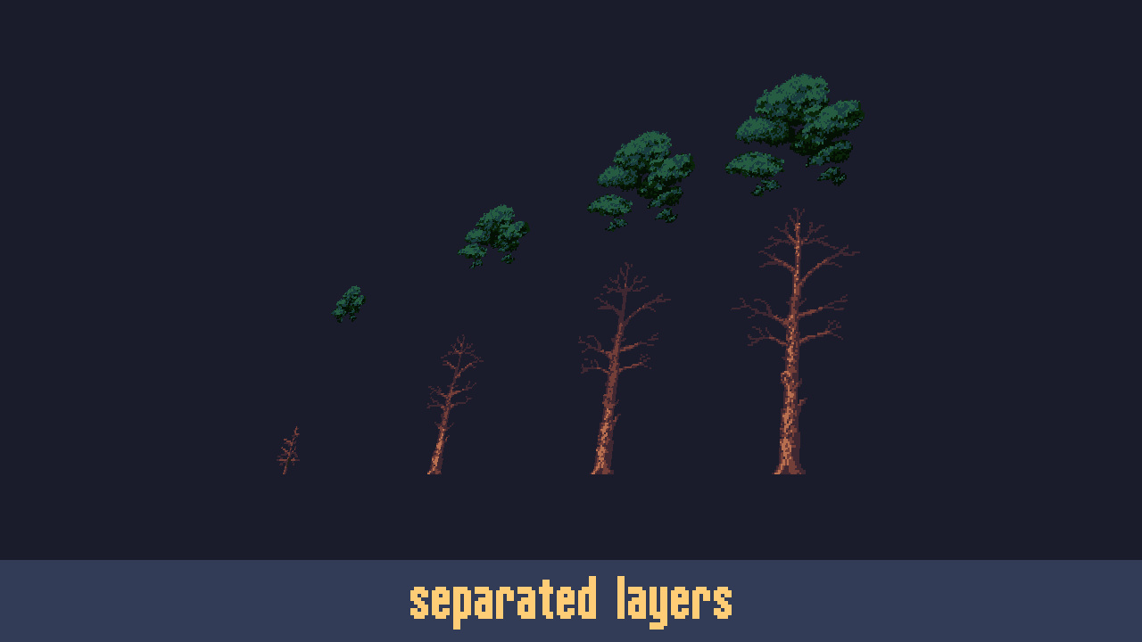 Get access to four unique tree types with multiple growth stages, all with separated leaves and trunks for easy customization. With a developer-friendly license, this bundle is the perfect addition to your game development arsenal. Upgrade your game today!